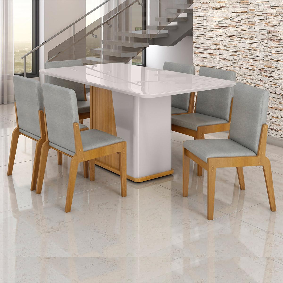 Em momentos especiais com o Conjunto Mesa Harmonia com 6 Cadeiras Sinfonia. O tampo em MDF com Vidro traz elegância, enquanto as cadeiras em Linho garantem conforto e beleza. Ideal para receber a família e amigos com estilo e praticidade. Adicione sofisticação ao seu lar e aproveite cada detalhe!