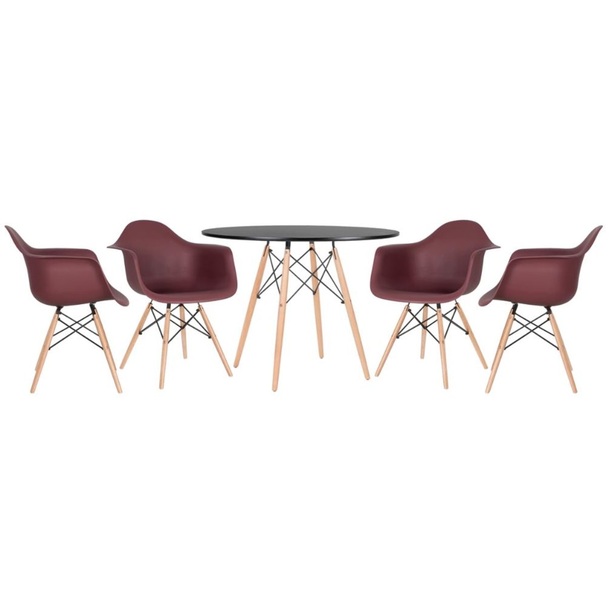 MóveisQuartoCadeira de QuartoKIT - Mesa Eames 100 cm preto + 4 cadeiras Eiffel DAW marrom
