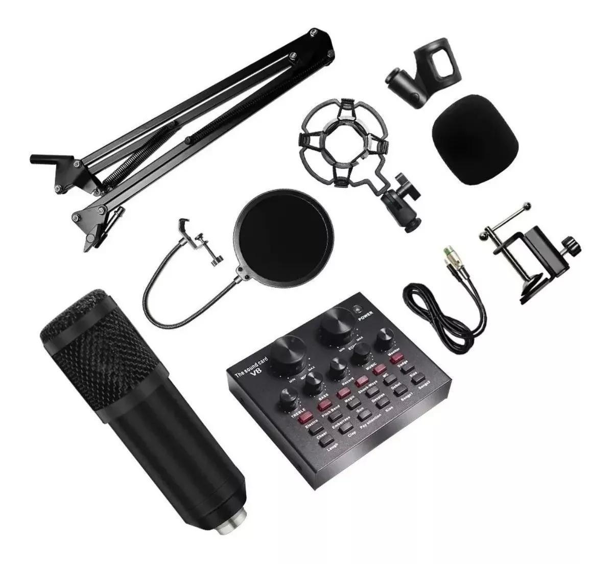 Kit Microfone Condensador Profissional Com Mesa De Som