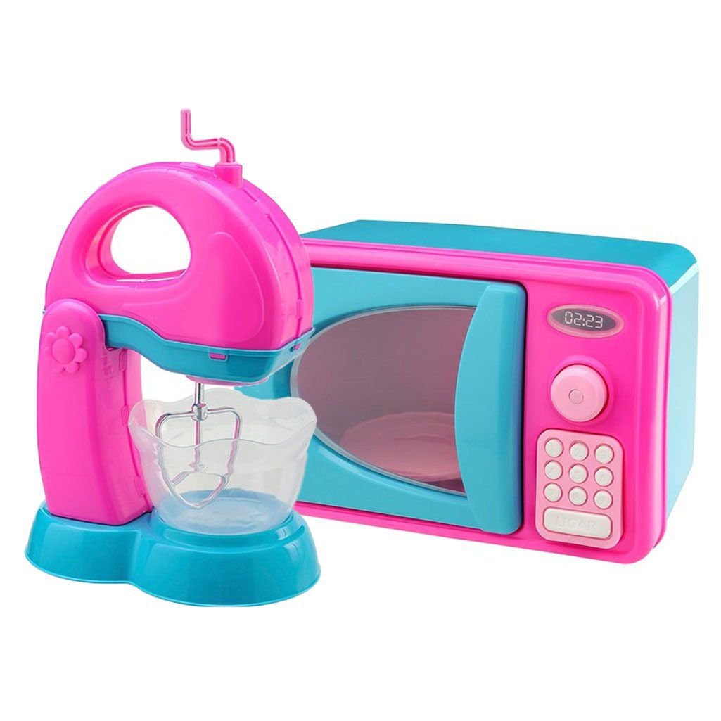 Kit Mini Brinquedo Cozinha Batedeira E Microondas