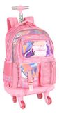 Kit Escolar Mochila Com 04 Rodinhas Giros De 360º + Lancheira Térmica E Estojo 100 Pens.