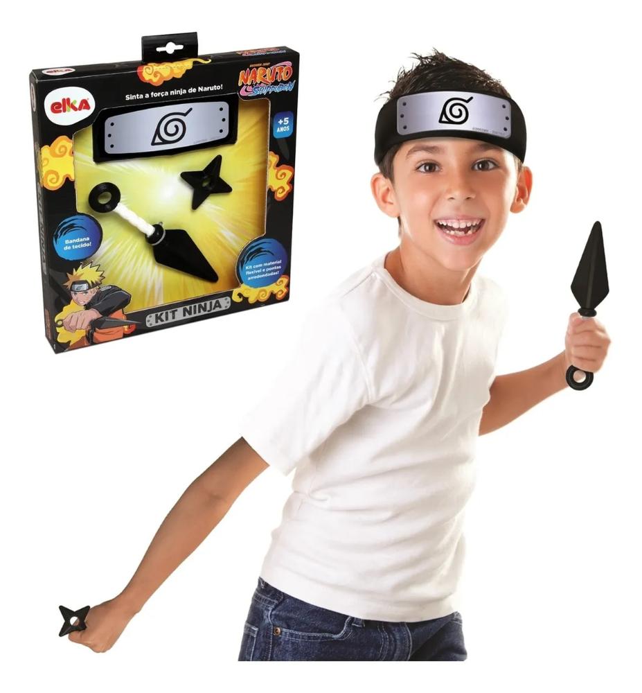 Kit Ninja Naruto Shippuden - Elka Seja um ninja corajoso e proteja o mundo dos vilões da Akatsuki. Kit bom bandana Naruto Shippuden, kunai e shuriken. Faixa em tecido e plástico, acessórios ninja com material flexível com pontas arredondadas. Os meninos irão adorar e se sentir verdadeiros ninjas! Idade recomendada: a partir de 5 anos. Selo INMETRO: 001290/2020 - OCP006.