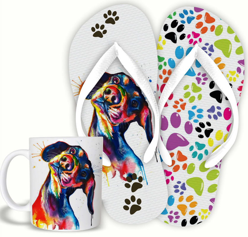 CalçadosChinelosKIT PET Basset Caneca cerâmica + Chinelo