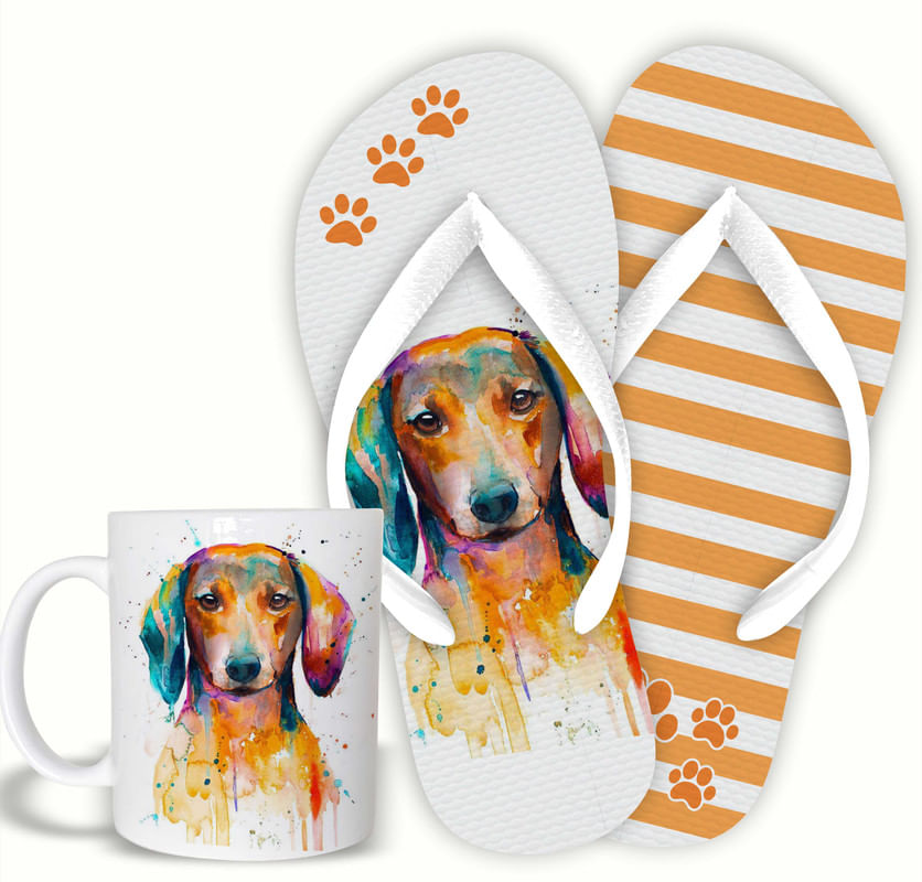 CalçadosChinelosKIT PET Basset Caneca cerâmica e Chinelo