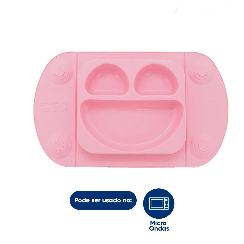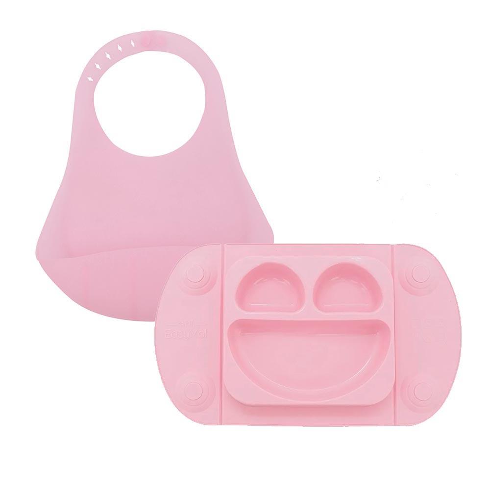 Kit Prato Infantil Com Ventosa E Babador Silicone Rosa Mimo Style