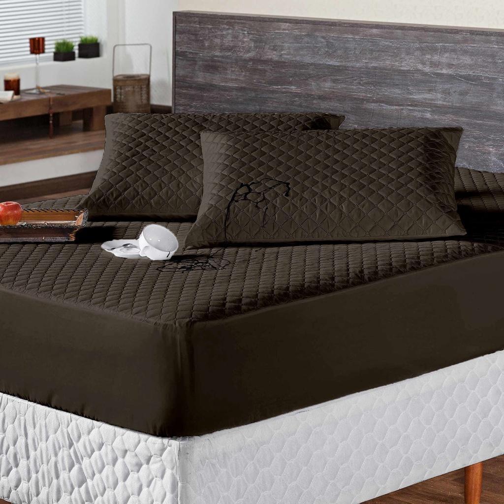 Kit Protetor Colchão Solteiro + 1 Capa De Travesseiro Impermeável + Saia Box Marrom