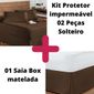 Kit Protetor Colchão Solteiro + 1 Capa De Travesseiro Impermeável + Saia Box Marrom
