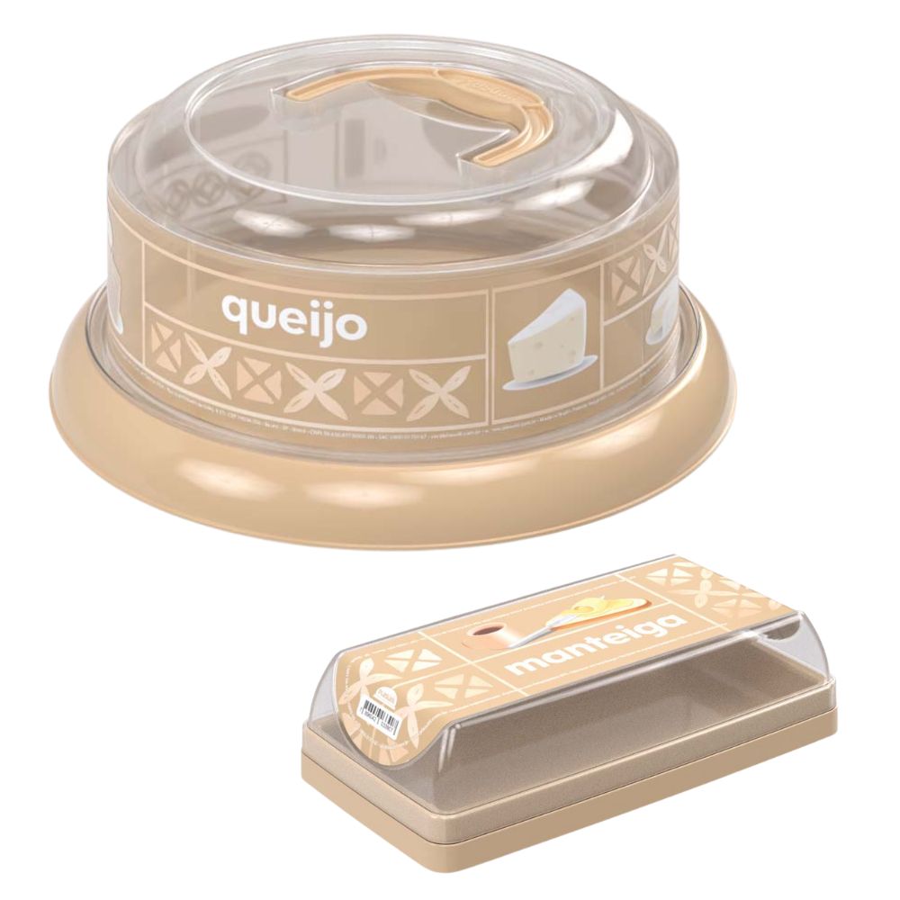 Conjunto Com 1 Queijeira (porta Queijo) De Plástico E 1 Manteigueira (porta Manteiga) De Plástico. a Queijeira Possui Base Com Rosca E Alça Superior Para Transporte. o Porta Manteiga É Ideal Para Manteigas Em Tabletes. Possui Base E Tampa Para Manter O Conteúdo Longe De Odores E Impurezas. todos Os Produtos São Produzidos Em Plástico Atóxico E Livre De Bpa (bpa Free). Desta Forma, Podem Ser Levados Ao Freezer E Ao Micro-ondas. Contam Ainda Com Decoração Exclusiva Que Utiliza A Tecnologia Intra Imagem, O Que Garante Vida Longa Ao Desenho, Sem Desbotar Ou Apagar Com O Uso.