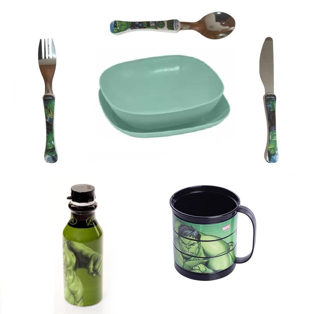 Kit Refeicao Hulk - Avengers - Com Faqueiro Caneca Garrafa