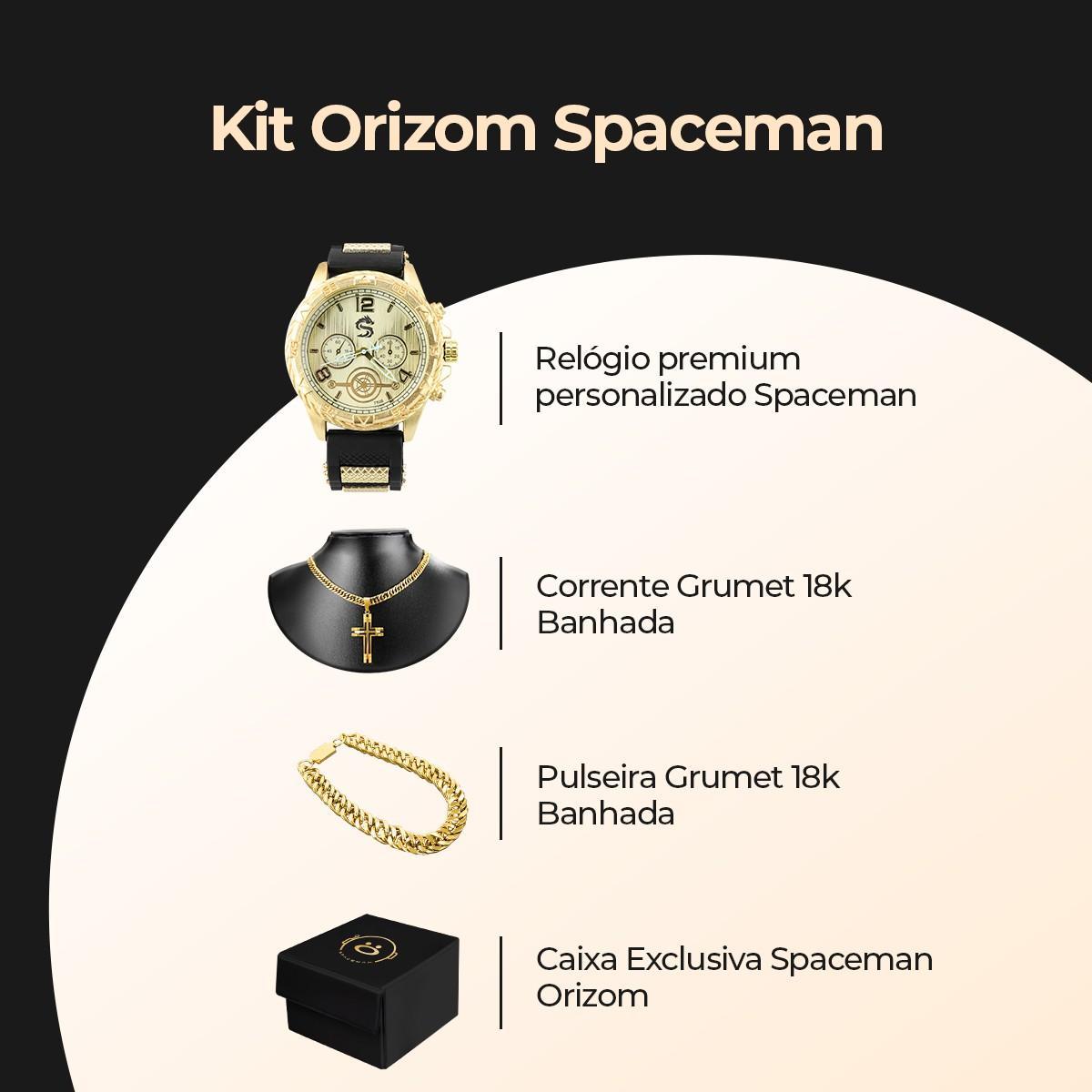 Além Disso, O Relógio Acompanha Acessórios Adicionais. Ele Vem Com Um Cordão Grumet Banhado A Ouro 18k, Que Possui 11mm De Largura, E Um Pingente Grande Em Forma De Cruz, Que Adiciona Um Toque Religioso E Estiloso Ao Conjunto. Também Inclui Uma Pulseira Grumet Banhada A Ouro 18k, Com A Mesma Largura Do Cordão.