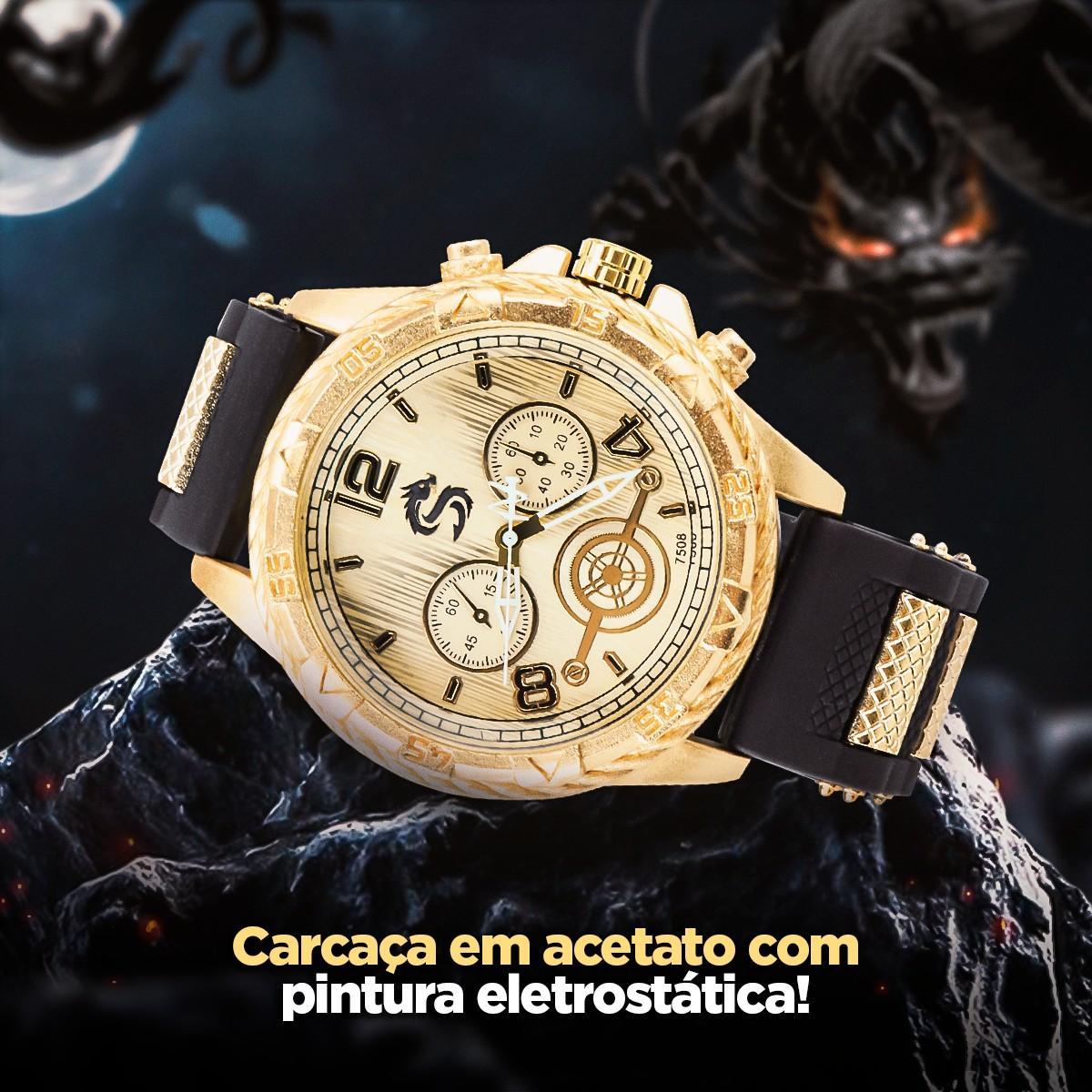 Com O Relógio Orizom Spaceman Dragon Dourado Com Pulseira De Silicone Ajustável, Você Terá Um Acessório De Alta Qualidade, Com Design Moderno E Elementos Adicionais Que Complementam O Estilo. É Uma Combinação Perfeita De Funcionalidade E Elegância.