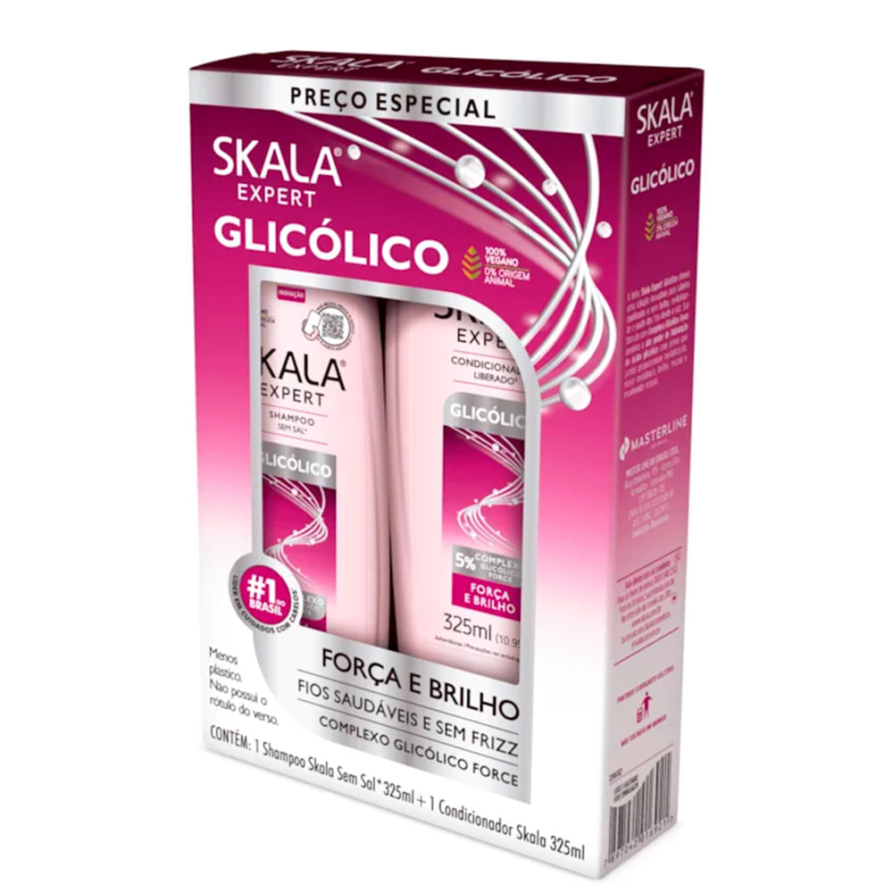 o kit Skala Expert Glicólico É A Solução Ideal Para Quem Busca Revitalizar Cabelos Danificados E Sem Brilho. Desenvolvido Com O Exclusivo Complexo Glicólico Force, Ele Combina O Poder Hidratante Do Ácido Glicólico Com Ativos Que Promovem Um Tratamento Completo E Eficaz Para Os Fios.