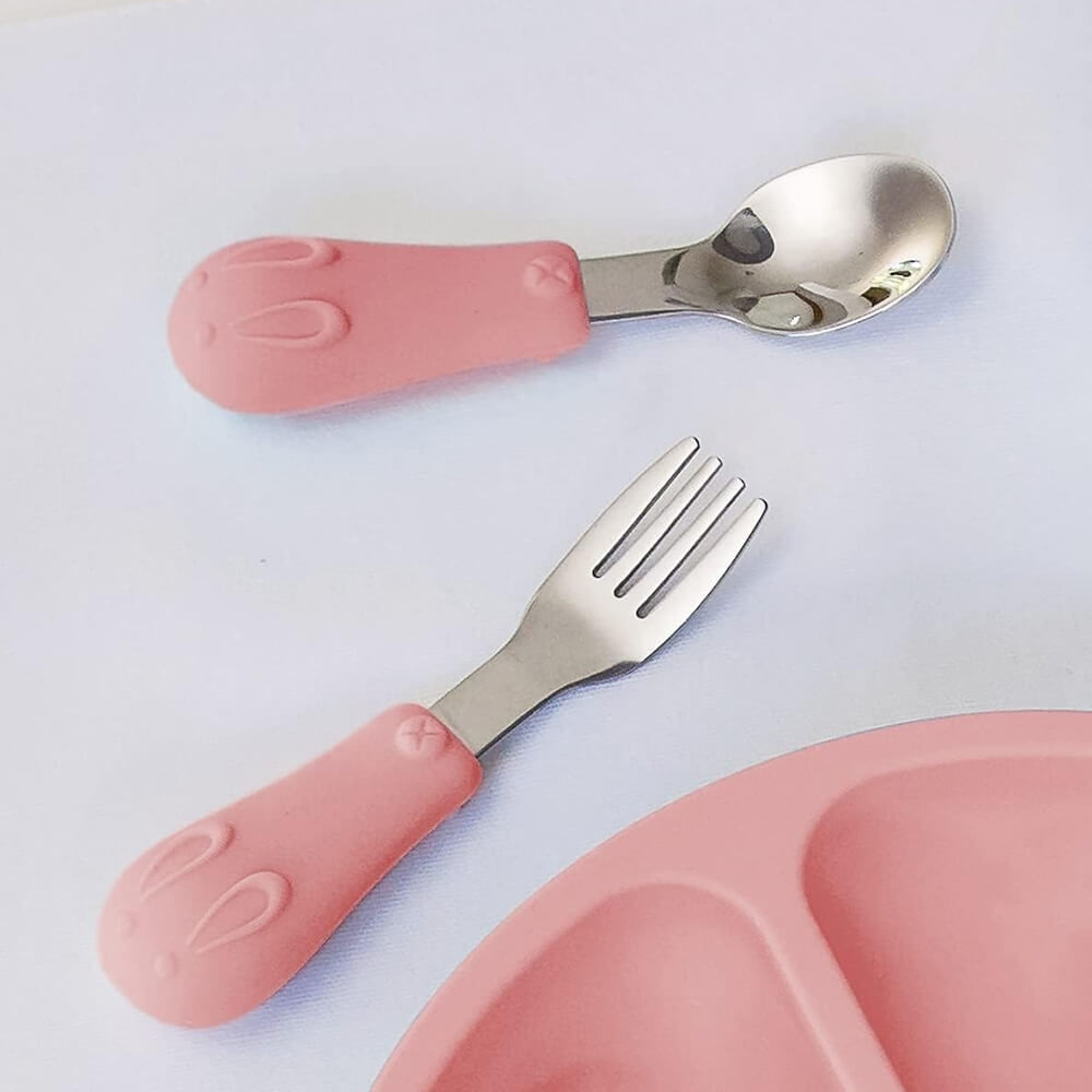 Kit Talheres Cabo Em Silicone Rosa Buba