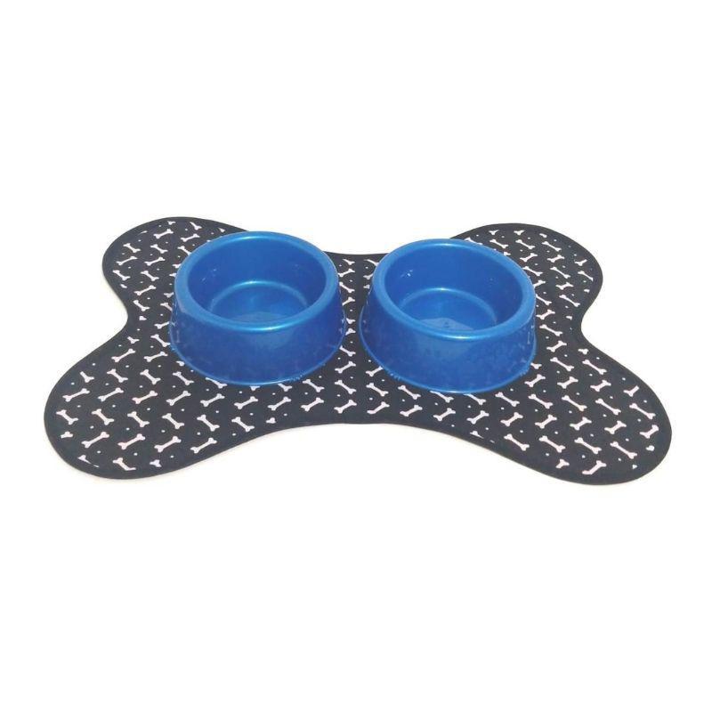 Kit De Tapete Pet, Comedouro E Bebedouro - Ossinho Dupla Face