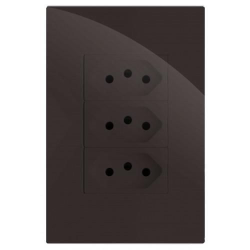 Cj Tomada Tripla 10a 4x2 - Recta Chocolate Gloss - Brg11220-8ch