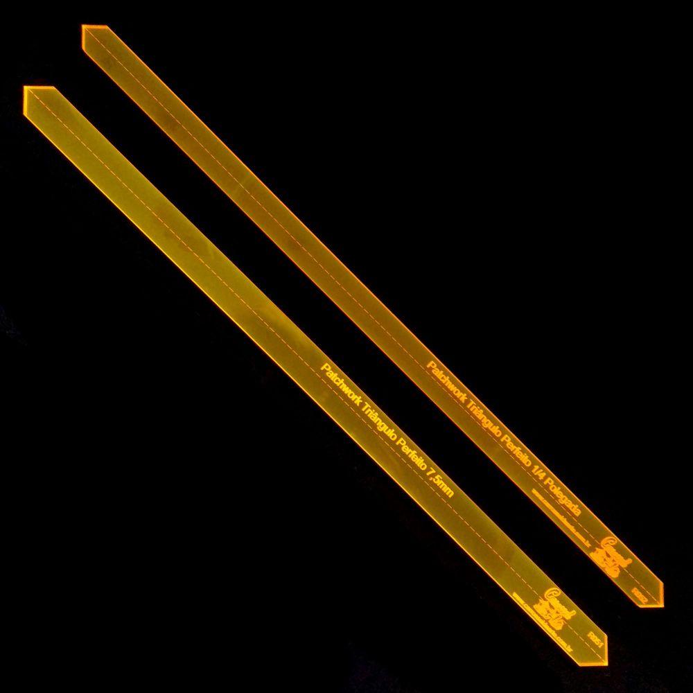 Kit Triangulo Perfeito Cm E Pol.kit Triangulo Perfeito Cm E Pol. Kit Composto Por 2 Réguas Sendo: 1 Régua Com Marcações Em Polegadas Tamanho De 1/2 X 12 Polegadas Margem De 1/4" - Marcação Tracejada Na Régua 1 Régua Com Marcações Em Centímetros Tamanho De 1,5 X 30 Centímetros Margem De 7,5 Mm - Marcação Tracejada Na Régua Régua Criada Para Uso Em Blocos Quadrados E Triangulares. Trabalhos: Colchas, Centros De Mesa, Bolsas E Jogos Americanos E Tudo Mais Que A Sua Imaginação Permitir Ideal Para Patchwork, Scrapbook. Marca: Carrossel Da Arte Material: Acrílico Virgem Cor: Laranja Fluorescente Transparente Espessura: 3 Mm Régua Gravados A Laser, Que Nunca Vão Ser Apagadas.informações Técnicas