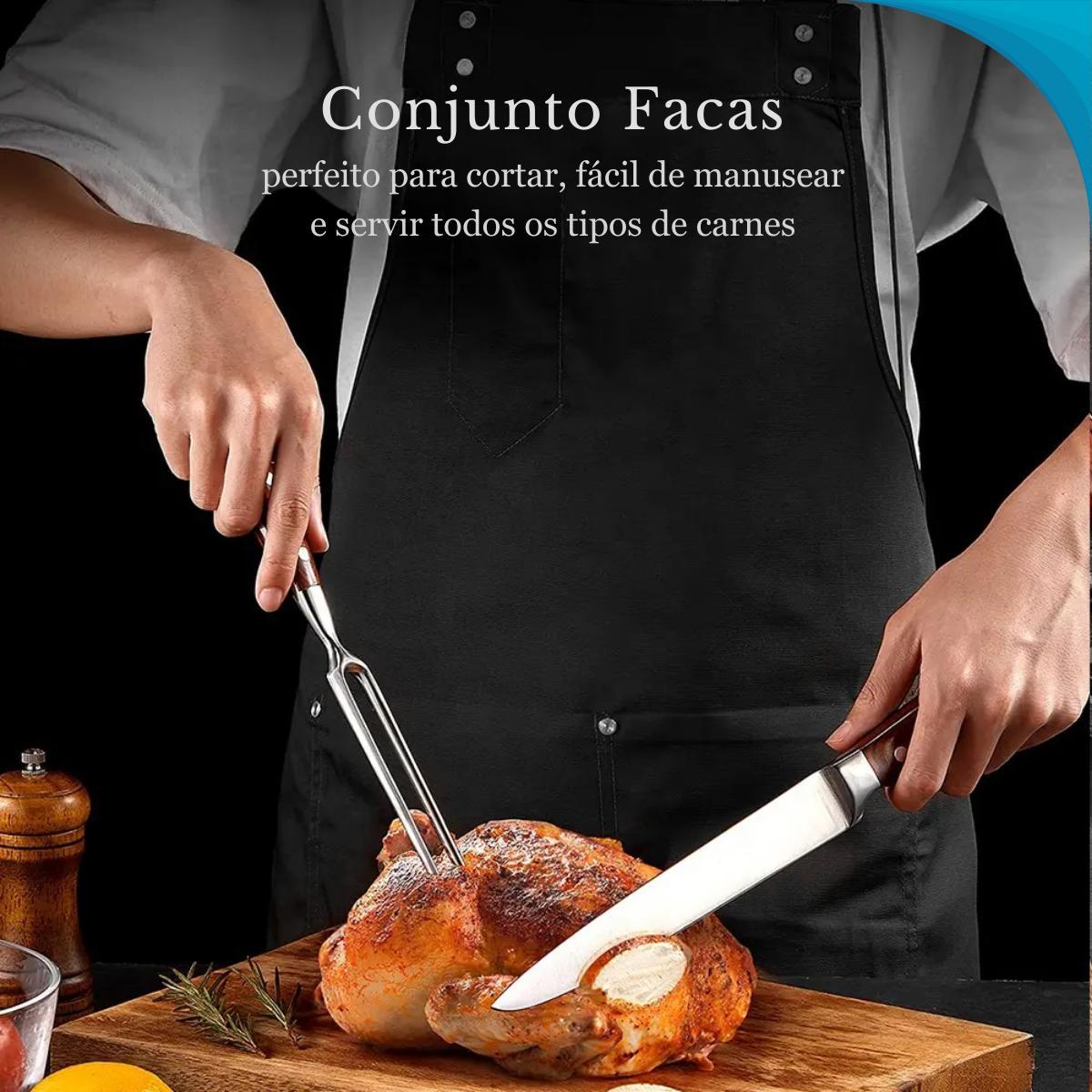 Apresente Elegância, Funcionalidade E Durabilidade Em Sua Cozinha Ou Churrasco Com Este Incrível Conjunto De Facas De Alta Qualidade. O Kit Inclui Ferramentas Essenciais Para Cortes Precisos, Fabricadas Em Aço Inoxidável E Com Cabos De Madeira Ergonômicos. Ideal Para Chefs Profissionais, Amantes Da Culinária Ou Para Um Presente Especial.