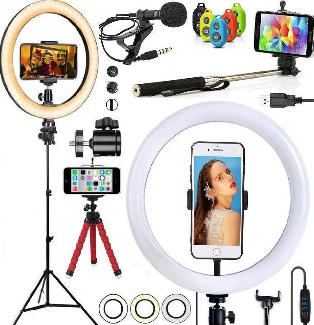 Agora Seus Vídeos E Fotos Vão Ficar Profissionais Com Este Incrível Ring Light 26cm,acompanhado Do Mini Tripé E Suporte Para Celular,ele Vai Pronto Para Uso E Fácil Utilização.com 3 Tipos De Cores Sua Iluminação Estará Completa.