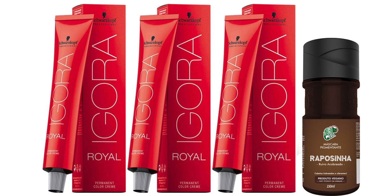 Kit Inclui: - 1 Unidade Máscara Pigmentante Kamaleão Color Raposinha Com 150ml - 3 Unidades Coloração Permanente Igora Royal 8-77 Com 60g Cada. Coloração Permanente Igora Royal Schwarzkopf Igora Royal Cobre Até 100% Dos Cabelos Brancos, Proporciona Retenção Da Cor E Representa Cores Intensas. Equaliza A Cor - Mesmo Em Cabelo Poroso. Tons Clareadores E Cuidado Avançado Para Máximo Contraste E Brilho. Com Resultados Absolutamente Fiéis À Cartela De Cor. Máscara Pigmentante Kamaleão Color É Uma Máscara Pigmentante Liberada Para Low Poo, Não Contém Parabenos, Amônia E Peróxidos E Não É Testado Em Animais. Acreditamos Que Qualidade Não É Diferencial E Sim Obrigação, Trazemos Ao Mercado Um Produto Vegano, Altamente Concentrado E Com Uma Formulação Hidratante E Preço Justo. A Durabilidade É Entre 5 A 25 Lavagens E Depende Da Cor Escolhida Sugestão De Uso: Com Os Cabelos Limpos, Livre De Shampoo E Cremes Condicionantes, Aplicar A Máscara Pigmentante Kamaleão Cor Flamingo Mecha A Mecha Deixando Agir De 30 A 40 Minutos. Recomenda-se Descolorir O Cabelo Até Obter Um Loiro Muito Claro, Tom 10 Ou O Produto Pode Ser Diluído Em Máscara Branca Para Atingir Tons Mais Claros. Após O Tempo De Pausa, Lavar Os Cabelos Até A Completa Retirada Do Excesso De Produto. (este Kit Não Inclui Oxigenada)