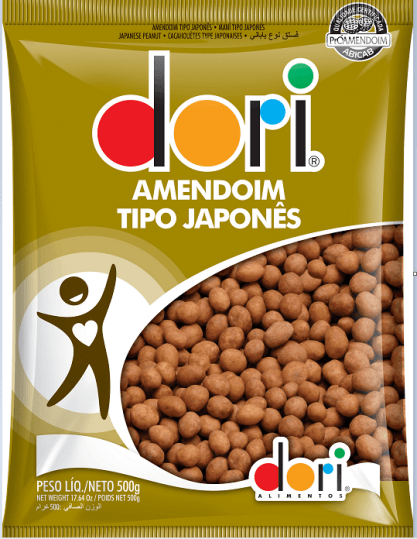 Amendoim Japonês 500g.. ..Amendoim Japonês Dori, Delicioso amendoim com casquinha crocante! ..Amendoim é sempre companhia perfeita, há que goste dos salgados, dos doces ou dos picantes e tem aqueles que combinam amendoim com o melhor da vida, tipo churrasco em família e happy hour com os amigos..O amendoim é uma fruta oleaginosa da mesma família das castanhas, das nozes e das avelãs, sendo rico em gorduras boas como o ômega-3 que ajudam a diminuir a inflamação no corpo e proteger o coração. Ideal para servir em qualquer tipo de evento ou ocasião...Ingredientes : Amendoim, farinha de trigo fortificada com ferro e ácido fólico, açúcar, sal, molho de soja e milho, amido de milho, realçador de sabor glutamato monossódico, gordura vegetal, fermento químico bicarbonato de sódio e antioxidante INS 319. CONTÉM GLÚTEN