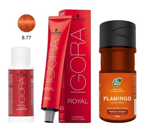Kit Inclui: - 1 Unidade Máscara Pigmentante Kamaleão Color Flamingo Com 150ml - 1 Unidades Coloração Permanente Igora Royal 8-77 Com 60g - 1 Unidade Oxigenada Igora Royal 20 Volumes Com 60ml. Coloração Permanente Igora Royal Schwarzkopf Igora Royal Cobre Até 100% Dos Cabelos Brancos, Proporciona Retenção Da Cor E Representa Cores Intensas. Equaliza A Cor - Mesmo Em Cabelo Poroso. Tons Clareadores E Cuidado Avançado Para Máximo Contraste E Brilho. Com Resultados Absolutamente Fiéis À Cartela De Cor. Máscara Pigmentante Kamaleão Color É Uma Máscara Pigmentante Liberada Para Low Poo, Não Contém Parabenos, Amônia E Peróxidos E Não É Testado Em Animais. Acreditamos Que Qualidade Não É Diferencial E Sim Obrigação, Trazemos Ao Mercado Um Produto Vegano, Altamente Concentrado E Com Uma Formulação Hidratante E Preço Justo. A Durabilidade É Entre 5 A 25 Lavagens E Depende Da Cor Escolhida Sugestão De Uso: Com Os Cabelos Limpos, Livre De Shampoo E Cremes Condicionantes, Aplicar A Máscara Pigmentante Kamaleão Cor Flamingo Mecha A Mecha Deixando Agir De 30 A 40 Minutos. Recomenda-se Descolorir O Cabelo Até Obter Um Loiro Muito Claro, Tom 10 Ou O Produto Pode Ser Diluído Em Máscara Branca Para Atingir Tons Mais Claros. Após O Tempo De Pausa, Lavar Os Cabelos Até A Completa Retirada Do Excesso De Produto.