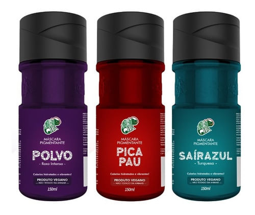 Kit Inclui: 1 Tubo Máscara Pigmentante Pica Pau - Vermelho Kamaleão Color Com 150ml. 1 Tubo Máscara Pigmentante Polvo - Roxo Intenso Kamaleão Color Com 150ml 1 Tubo Máscara Pigmentante Saírazul - Turquesa Kamaleão Color Com 150ml Durabilidade: 05 A 25 Lavagens Informações Importantes: - Deve Ser Utilizada Apenas Em Cabelos Previamente Descoloridos Tom 10 Ou Mais Claro. - Faça O Teste De Mecha Antes De Aplicar O Produto Em Todo O Cabelo Para Garantir Que A Base Esta Ideal Para A Aplicação E Siga Corretamente As Instruções De Uso. - Não Misturar Com Peróxidos E Oxigenadas. A Marca Kamaleão Color Não É Testada Em Animais E Não Utiliza Ingredientes De Origem Animal Em Sua Fórmula. Produto Vegano, Liberado Para Low Poo. Instruções De Uso Antes De Aplicar Faça A Descoloração Do Seu Cabelo, Preferencialmente Com Ajuda De Um Profissional - Utilize Vaselina Ou Creme Hidratante Para Proteger O Contorno Do Seu Cabelo, Evitando Manchas Indesejáveis Na Pele - É Recomendável O Uso De Luvas Durante A Aplicação. Teste De Mecha Antes De Aplicar O Produto Em Todo O Cabelo, Faça Um Teste Em Uma Pequena Mecha Já Descolorida Para Conferir Se O Seu Cabelo Atingirá O Tom Desejado - Caso O Resultado Não Seja Satisfatório, Faça Novas Descolorações Para Atingir Uma Base Mais Clara, Até Obter O Resultado Desejado - Pode Ser Necessário Neutralização Do Amarelado Para Aplicações De Algumas Cores. Como Colorir Lave Os Cabelos Com Um Shampoo De Ph Neutro - Não Utilize Condicionadores - Seque Completamente Os Fios E Aplique Sua Tinta De Maneira Uniforme Com Ajuda De Um Pincel - Deixe Agir Por 30 Minutos A 40 Minutos - Enxágue Os Cabelos Cuidadosamente Sem A Utilização De Shampoo - Em Cabelos Multi-coloridos, Deve Ser Feita Aplicações Individuais, Não Enxague Cores Diferentes Juntas, Isso Provocará Manchas No Cabelo, Faça Separadamente. Cuidados É Normal Que O Tom De Cor Desbote Progressivamente Após Cada Lavagem, Para Recuperar O Tom Original Basta Reaplicar A Tintura - Para Um Resultado Mais Duradouro, Utilize Shampoo Especial Para Cabelos Coloridos - Pranchas, Escovas E Alisamentos Podem Desbotar A Coloração.