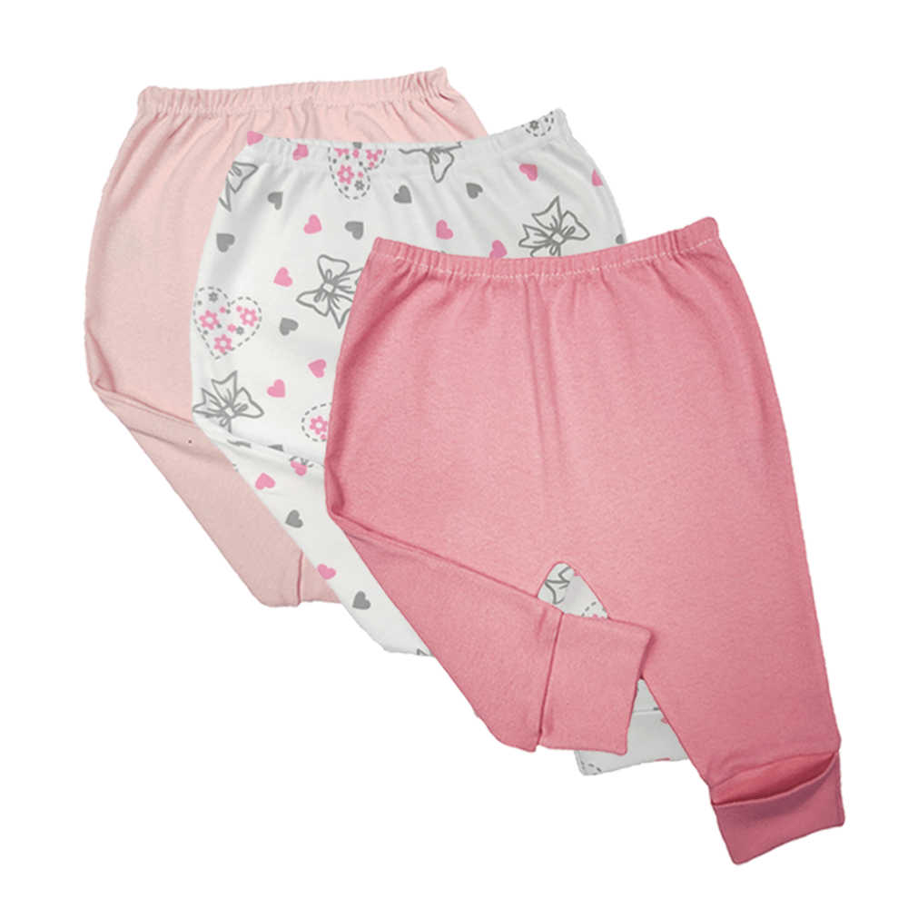 Kit Roupa De Bebê 3x Calça Mijão Liso E Estampado Vira Pé