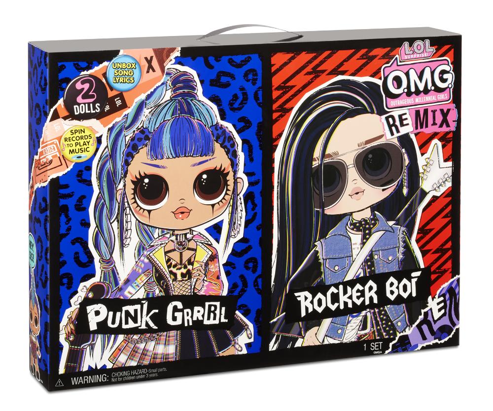 L.O.L. Surprise! OMG Remix 2 Pack apresenta o primeiro boneco, o Rocker Boi, da linha de fashion doll. São 2 fashion doll, o Rocker Boi e a Punk Grrl, com características do rock e cabelo estilizado. L.O.L. Surprise! OMG Remix 2 Pack é um combo que reúne moda, unboxing, dança e muita, muita música!• O Rocker Boi é o irmão mais velho de um dos personagens favoritos dos fãs, Rocker. Ele tem cabelo comprido, assim como as grandes estrelas do rock! Rocker Boi adora sua jaqueta jeans desgastada e sua guitarra Flying V.• A Punk Grrrl também é irmã mais velha de um dos personagens favoritos dos fãs, Punk Boi. Ela é punk da cabeça aos pés e está sempre pronta pra detonar• Acompanha 2 discos em tamanho real que você pode girar para tocar música de verdade. Toque a gravação de cada personagem e em seguida, vire-os para Side BB (e gire o botão) para tocar o dueto deles. E uma revista com as letras das músicas de Punk Grrrl, Rocker Boi e do dueto.• Inclui: 2 fashion doll, 2 looks de moda, 2 pares de sapato, 2 acessórios para guitarra, acessórios de moda, caixa para chapéus, escova de cabelo, 2 suportes, 2 discos, revista e embalagem toca-discos que toca música.