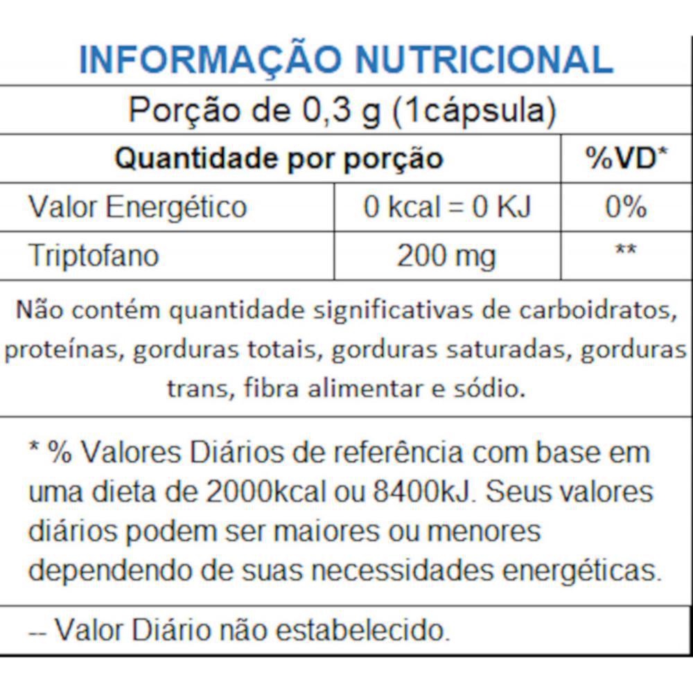 L-triptofano Vegano 60 Cápsulas De 300mg Sendo Que 200ml De L-triptofano Vegano Em Cada Capsula