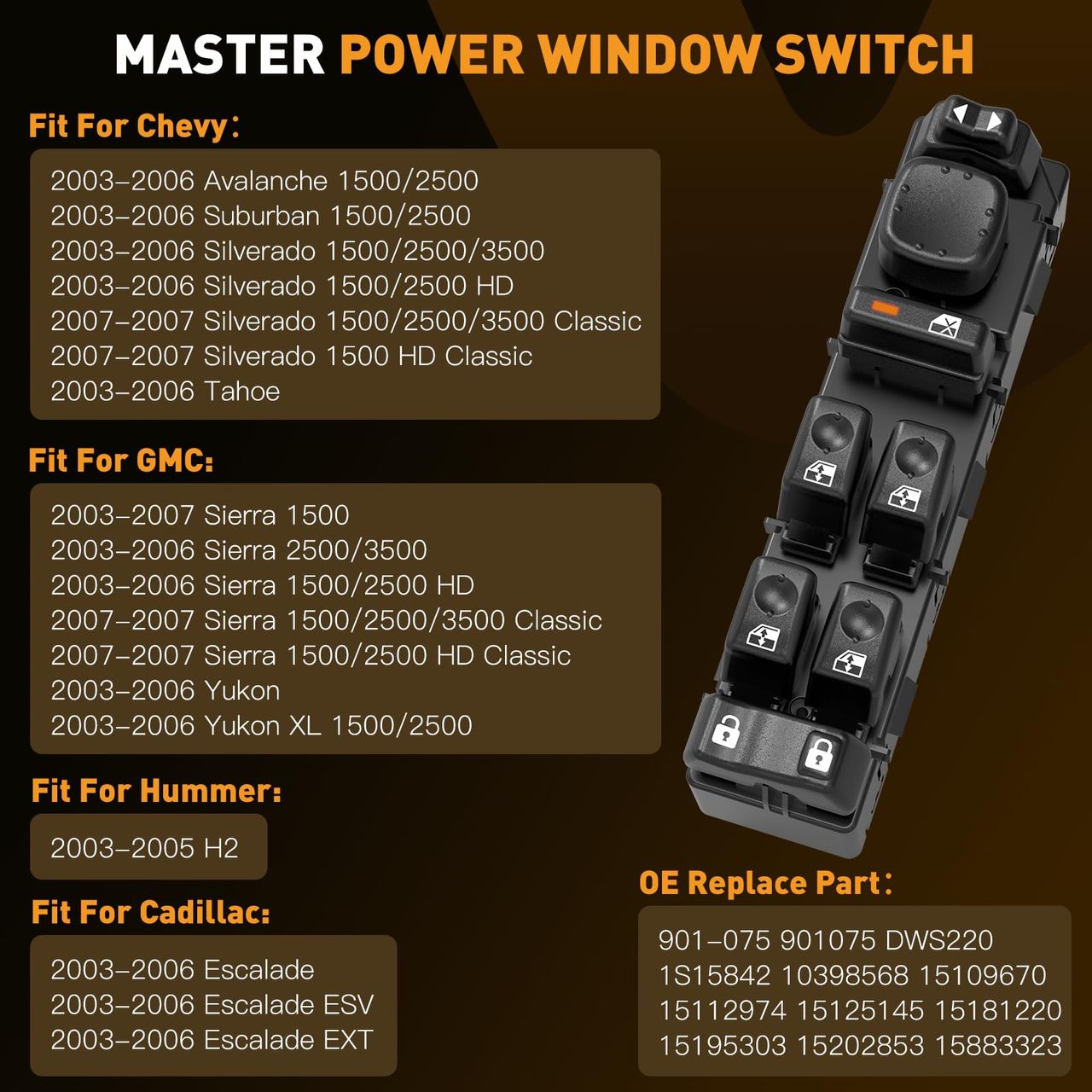 - Fácil De Instalar: Este Interruptor De Janela Elétrica Chevy Lado Do Motorista Se Encaixa, Funciona E Corresponde Ao Interruptor Original. Basta Remover O Interruptor De Controle De Janela Principal Original E Instalá-lo Com Conexões De Chicote De Fábrica. Foi Submetido A Simulação E Testes De Resistência Para Garantir Ajuste E Desempenho Adequados. O Conteúdo Da Embalagem Inclui 1 Interruptor De Janela Elétrica E 1 Ferramenta De Remoção De Interruptor Que Pode Ajudá-lo A Instalá-lo Facilmente.