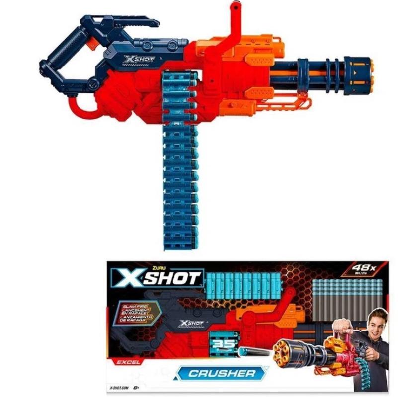O Novo Lançador X-shot Red Crusher, Agora Na Cor Vermelha, É Perfeito Para Aventuras Radicais Ele Tem Uma Correia De Munição Giratória Com Capacidade De 35 Dardos Que Alcançam Até 27 Metros De Distância Com Muita Precisão E Quando A Disputa Ficar Intensa, É Só Segurar O Gatilho Para Lançar Até 4 Dardos Por Segundo. Com O Lançador X-shot Red Crusher A Brincadeira Vai Ficar Muito Mais Eletrizante Acompanha 48 Dardos De Espuma. Lançador Compatível Com Os Principais Dardos Do Mercado.marca: Candidecódigo De Barras: 7897500557256modelo: 5725idade: + 8 Anos