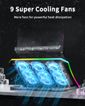 - 9 Superventiladores: A Mais Nova Almofada De Resfriamento De Laptop De 9 Núcleos Pode Resfriar Seu Laptop Com Eficiência. Este Refrigerador De Laptop Tem Saída De Ar Na Parte Superior E Inferior Do Gabinete. Você Pode Definir Modos Diferentes Para Os Ventiladores De Resfriamento.