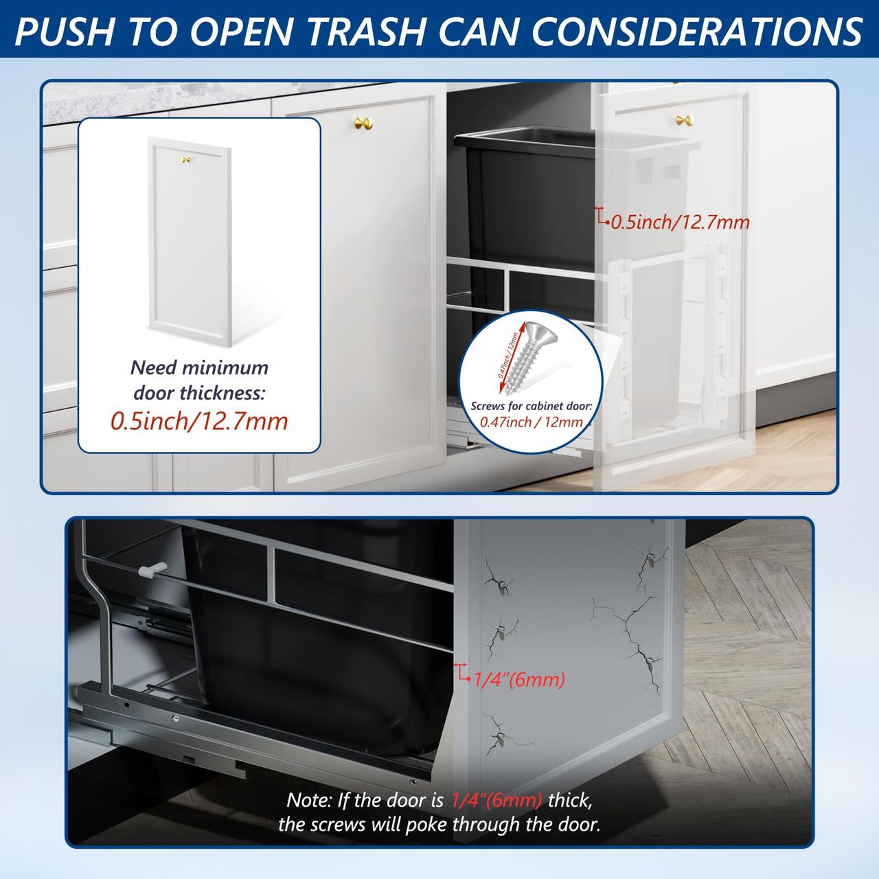 - Operação Suave E Silenciosa: Nunca Se Preocupe Em Empurrar A Porta Do Armário Com Força Suficiente Para Fazer Com Que A Lata De Lixo Tombe. A Lixeira Insputer Embaixo Da Pia É Feita De Slides De Amortecimento De Melhor Qualidade Com Função De Fechamento Suave, Que Tem Uma Grande Vantagem Na Redução De Ruído E Movimento Suave. É Muito Fácil De Usar E Oferece Uma Experiência Muito Confortável.