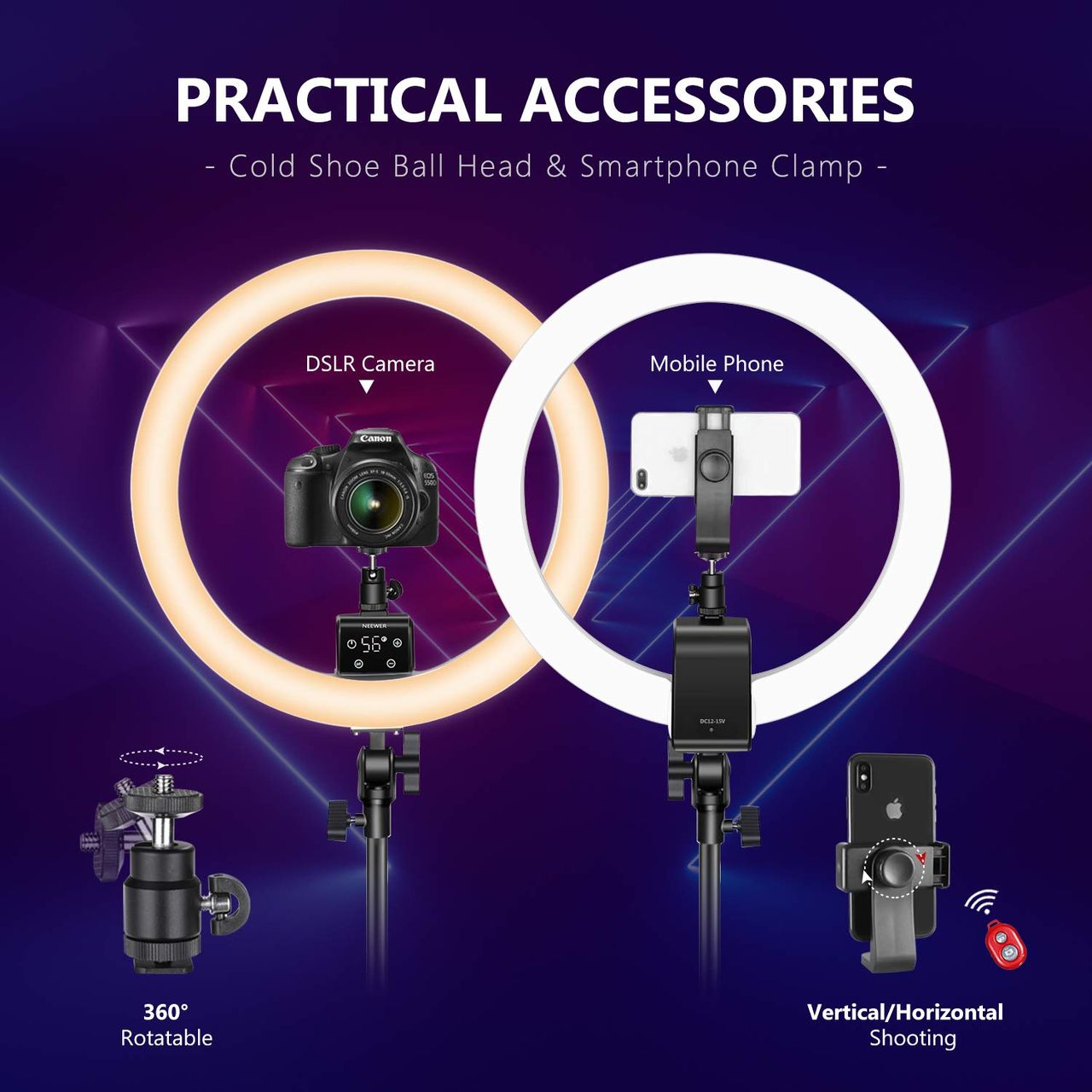 — Suporte Para Smartphone E Suporte De Luz Incluídos: Um Adaptador Hot Shoe É Compatível Com A Maioria Das Câmeras Dslr E Um Suporte Para Smartphone Para A Maioria Dos Smartphones, Perfeito Para Usar Para Maquiagem, Iluminação De Selfies, Fotografia De Estúdio De Retratos, Transmissões Ao Vivo, Blogueiro, Salão De Cabeleireiro, Etc.