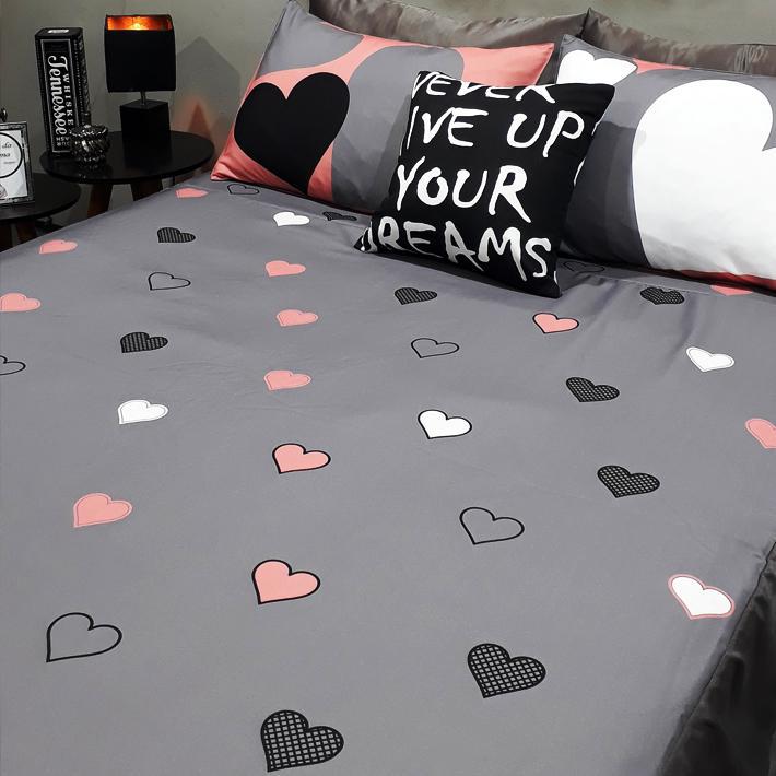 1 Lençol Com Elástico Para Cama De 2,03cmx0,96cm Para Colchões De Até 40cm De Altura - Lençol Cor Cinza Com Estampa Love Designer