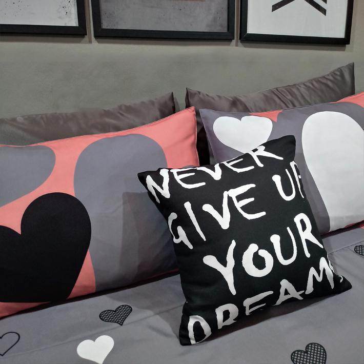 2 Capas De Travesseiros ( Fronhas ) De 0,70cmx0,50cm - Capas Em Cor Cinza Com Estampa Love Designer