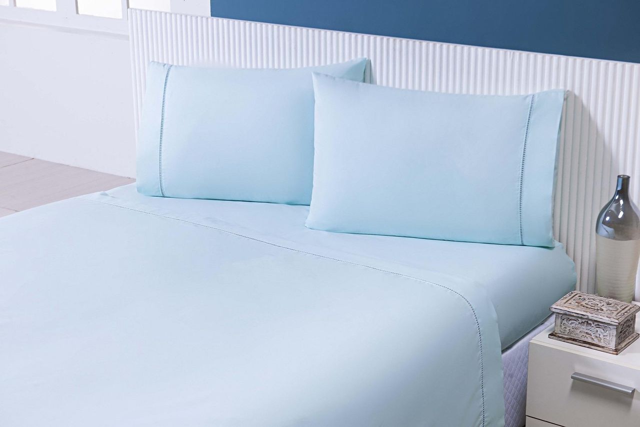 Lençol Solteiro 2 Peças C/elástico Percal 100% Algodão 200 Fios Verde Água