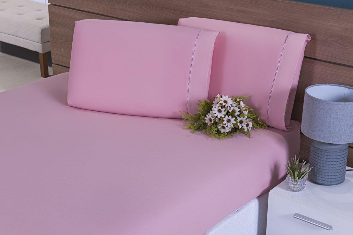 Lençol Solteiro 2 Peças C/elástico Percal 100% Algodão 200 Fios Rosé