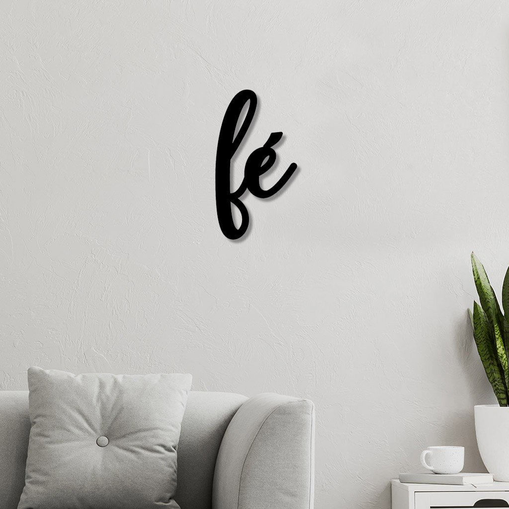 Letreiro De Parede Em Mdf Fé Preto - 10cm X 19cm - características Gerais Do Produto: Dimensões: 10cm X 19cm Cor Da Peça: Preto / Branco Espessura: 6mm Material: Mdf Laminado Acompanha: Fita Dupla Face garantia: 7 Dias