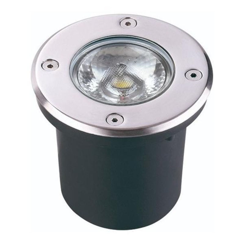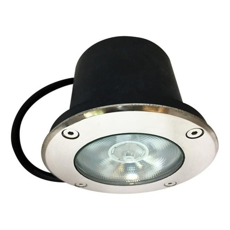 Luminaria De Chão Externa Embutida Led 12w . Cor da cúpula: Preto . Luminária de Solo Embutida 12W. . A luminária é ideal para ambientes externos, possui superfície de inox e sua aplicação é discreta e moderna. . A luminária está protegida contra agua e poeira - índice de proteção 67 (IP67) e pode ser instalada facilmente em pisos de áreas externas.. . Temperatura de cor: 2700K. Voltagem: 127/220V Bivolt. FP: 0,5. Vida Útil: 25.000 horas