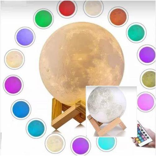 Luminária Lua Cheia 3d Abajur Usb Touch Controle 16 Cores