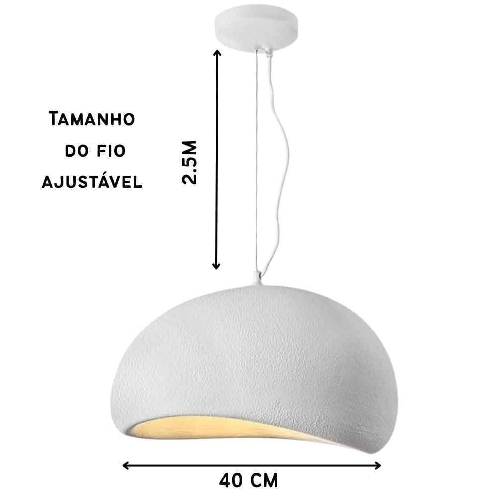 Luminária Pendente Cúpula Estilo Japonês Cor Branca Com 40cm