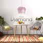 Descrição: O pendente Diamond segue as tendências de iluminação residencial, com belo design deixa o ambiente elegante e delicado, tem como matéria-prima madeira de reflorestamento MDF de 3mm material ecologicamente correto. O cabo possui acabamento em tecido deixando o pendente com personalidade e um acabamento luxuoso. A Canopla na cor do pendente forma um conjunto perfeito para decoração do ambiente.   Aplicações: Ideal para Salas de Jantar, Quartos, Área Gourmet, Lounges, Mesa de Cabeceira e etc.   Especificações: Altura: 25cm Largura: 30cm Comprimento do cabo: 150cm Tipo de soquete: E27 Potência Máxima: 60 W Voltagem: 110V/220V (Bivolt) Garantia: 90 dias Cores: Disponível em várias cores.   Conservação e Manutenção do Produto: Realize a limpeza com o produto desligado da rede elétrica. Utilize espanador de pó ou pano úmido com água. Nunca utilize soluções abrasivas.   Observação: Desligar a energia elétrica antes da instalação. Este item acompanha todos os acessórios necessários para instalação.   Atenção: Imagem meramente ilustrativa, não acompanha a lâmpada.