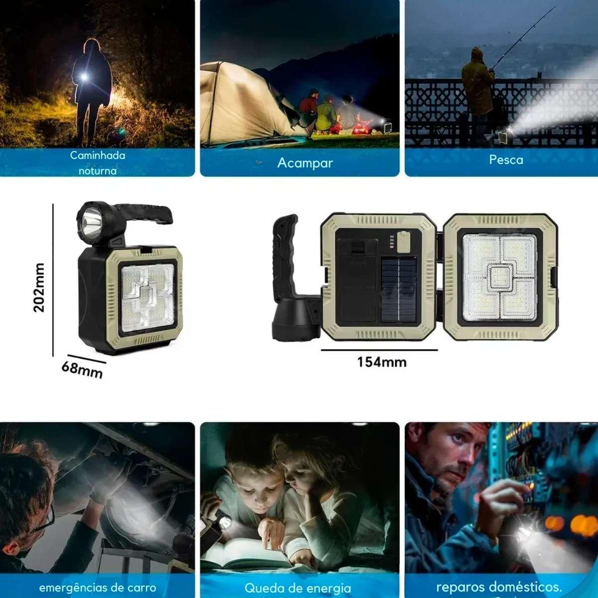Com Design Portátil E Resistente, Possui Modo De Iluminação Frontal E Superior, Além De Recarga Via Usb E Painel Solar - Perfeita Para Situações De Falta De Energia Ou Atividades Ao Ar Livre. Tudo Isso Acompanhado De Um Conjunto Completo De Ferramentas Para Pequenos Reparos E Manutenções.