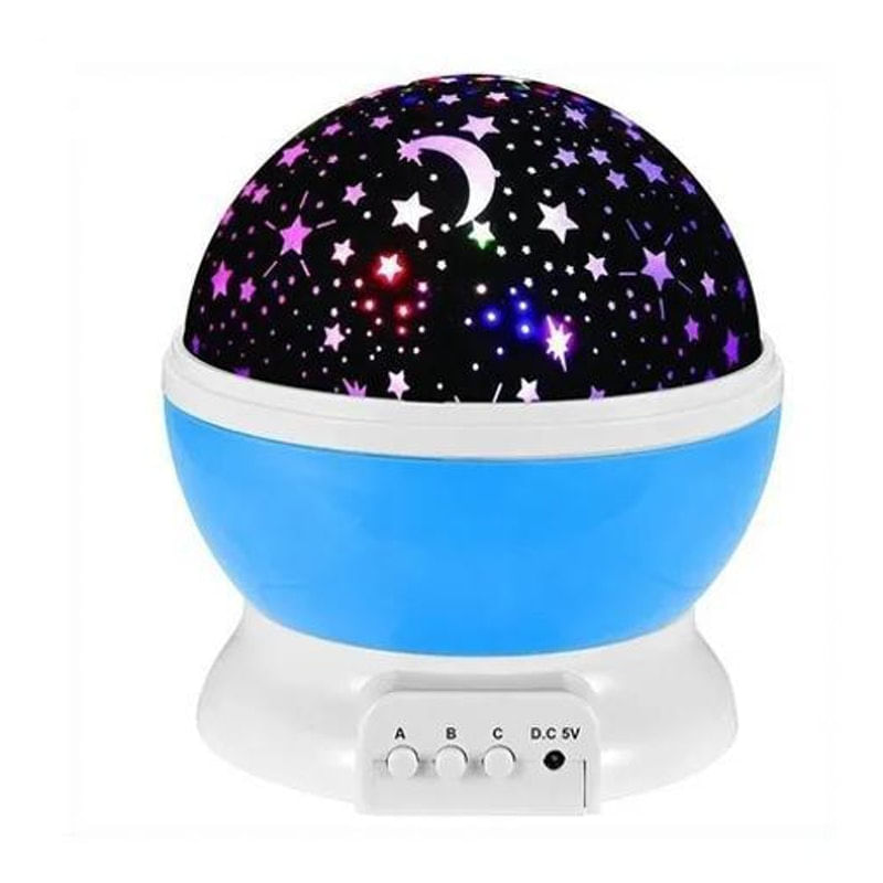 Luminária Projetor De Estrelas Cores Lua Abajour Usb . Cor: Azul . Luminária Projetor De Estrelas Cores Lua Abajour USB. .Perfeito para enfeitar um cômodo durante a noite..Ótima iluminação para quartos das crianças no ambiente noturno ou festa. Enfeite em geral..Quando a luminária for conectada via USB, pode se transformar num abajur normal, removendo a tampa estelar..Esta luminária é ideal para decorar o casamento, aniversário, festas, etc. Ótimo para o uso romântico da lâmpada da noite e da luz da decoração. .Variações de cores da lâmpada:.- Vermelho,.- Verde,.- Azul,.- Vermelho com azul,.- Verde com azul,.- Verde com vermelho,.- 3 cores juntos,.- As 3 cores piscando.. .- Alimentação por 3 Pilhas AA (não inclusas) ou cabo USB.. .Especificações:.Material: ABS.Tipo de interruptor: 3 botões de pressão.Tensão: 5V.Fonte de luz: 4 lâmpadas led. .Conteúdo Do pacote:.1 x Estrela Projetor.1 x Cabo USB.1 x manual Do Usuário Entidade:Luminária indicacao:Luminária cor:Azul Marca:Star Master marca:Star Master
