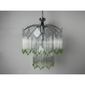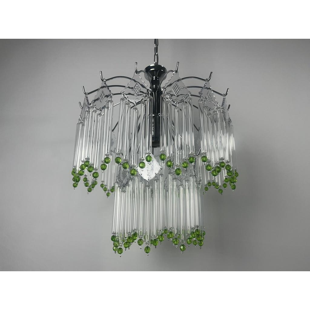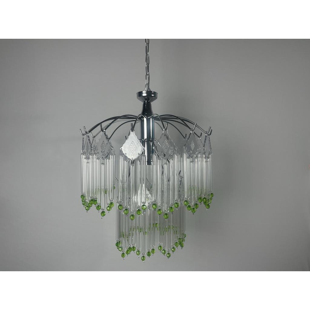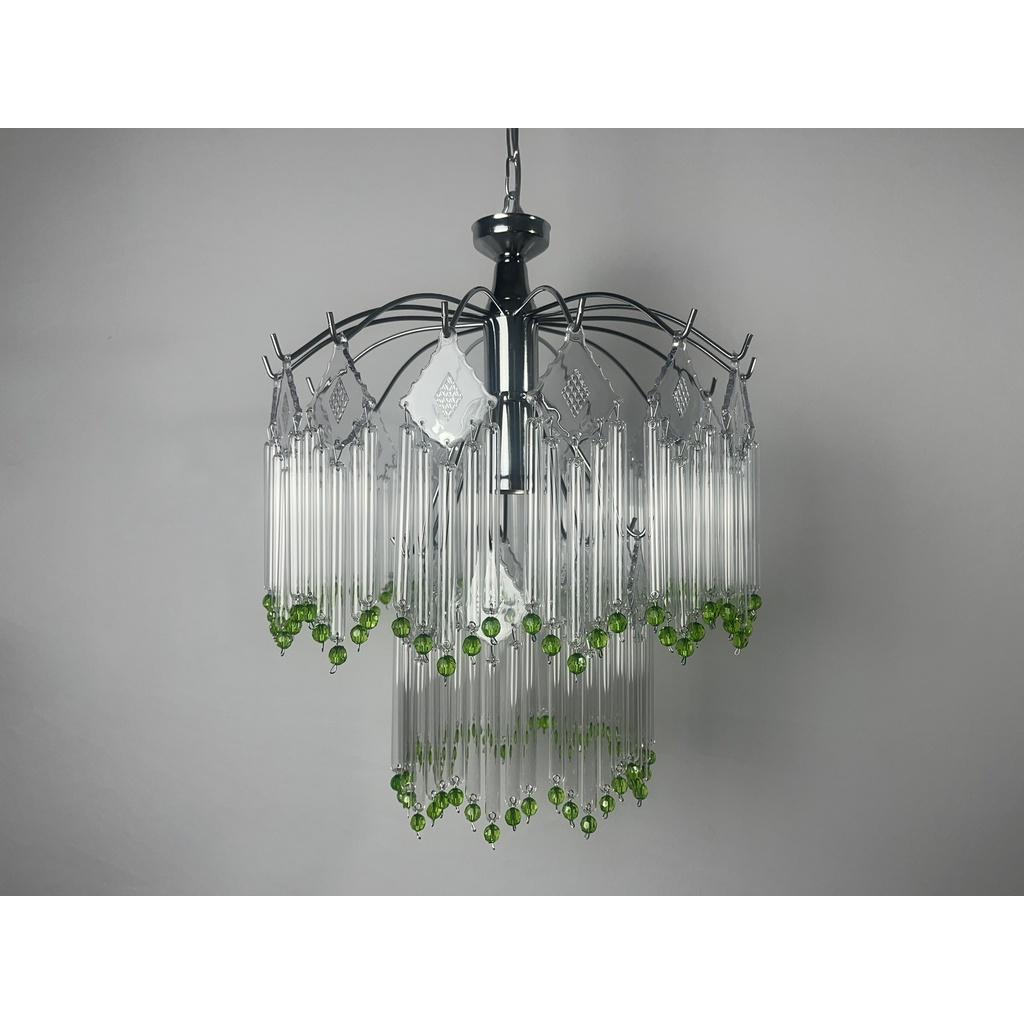Lustre De Vidro Com Cristais Acrílicos - Base Cromada Com 2 Andares