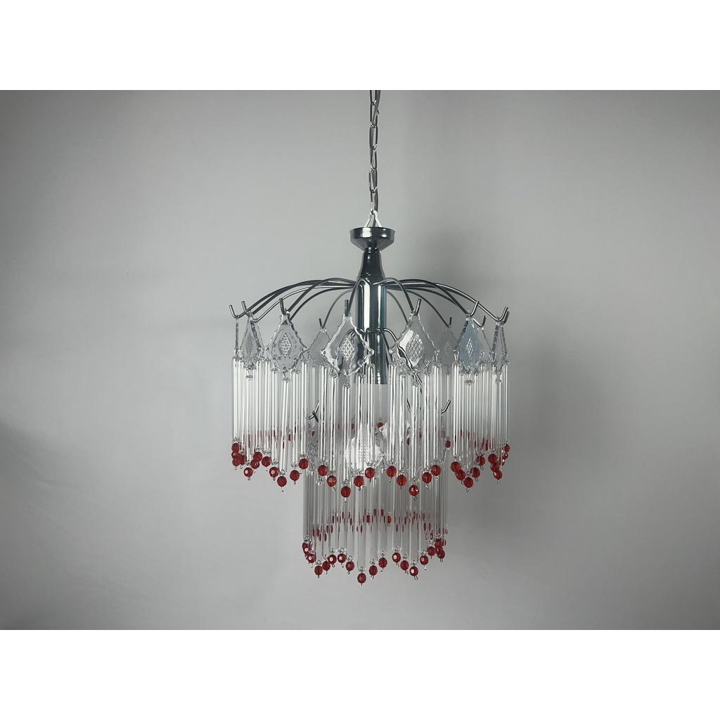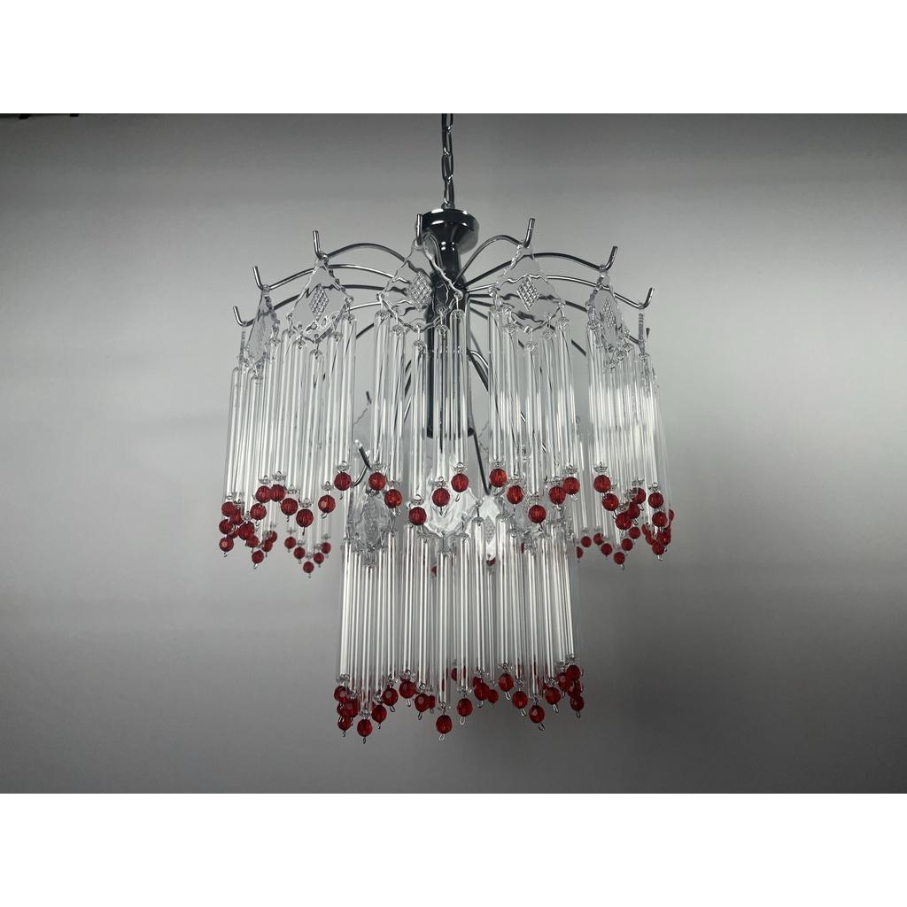 Lustre Pendente De Vidro - Base Cromada Com 2 Andares