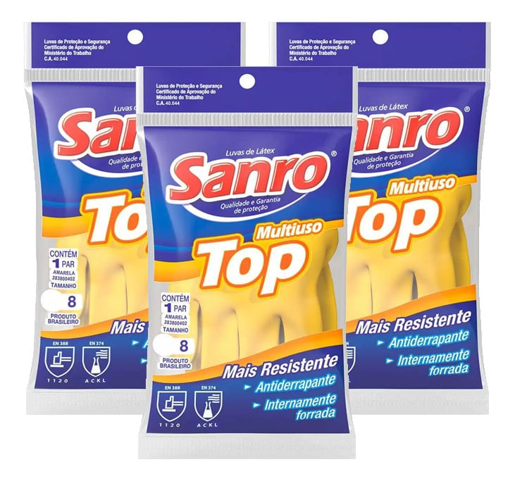 Itens InclusosLuva De Látex Sanro Multiuso Amarela Kit 3