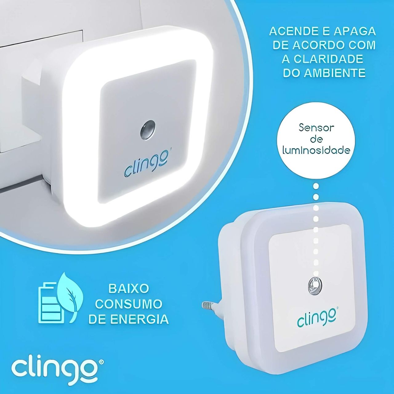 Luz Noturna Led Com Sensor - Clingo Com A Luz Noturna De Led Da Clingo As Noites Serão Mais Confortáveis E Seguras Tanto Para Seu Bebê Quanto Para Você. A Luz Noturna Com Sensor Da Clingo, Vem Com Essa Luz Noturna, Com Sensor De Luminosidade, Para Quartos E Corredores. Contém Um Sensor Que Ilumina E Apaga Automaticamente De Acordo Com A Claridade Do Ambiente. Iluminação Suave Ideal Para As Crianças. Lâmpada Led 0.5 W, Bivolt 110- 220v, Baixo Consumo De Energia, Medida Produto: 7 X 7 X 7 Cm, Medida Produto Na Caixa: 10 X 10 X 14 Cm. Marca: Clingo Contém: 01 Luz Noturna Com Sensor Automático - Clingo.