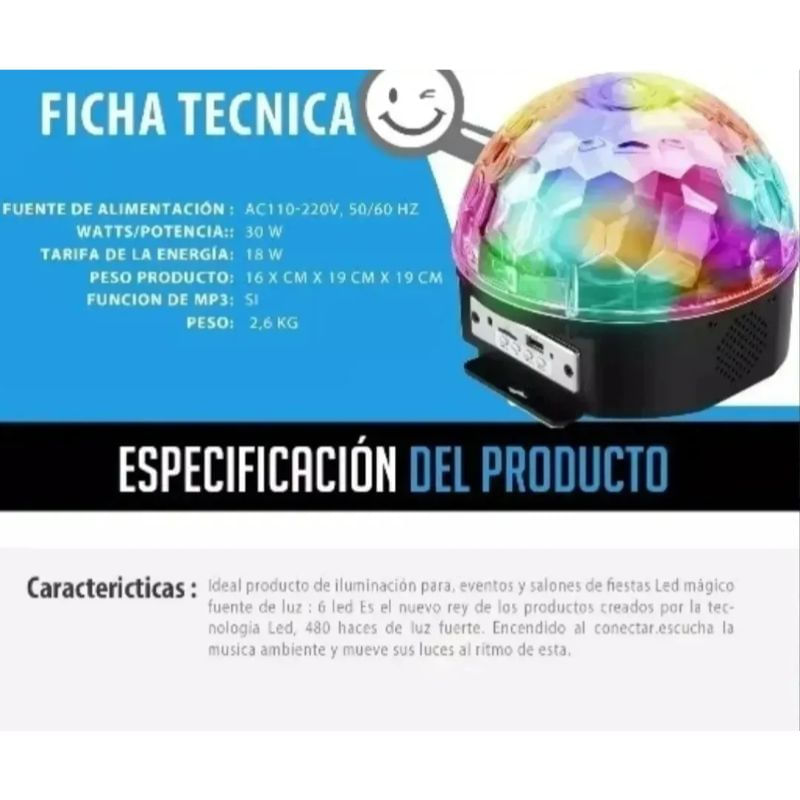 Ball Of Lights With Bluetooth Magic Display Dá Um Toque Único Ao Ambiente Com Esta Incrível Bola De Discoteca. Ao Usá-la, Você Fará A Diferença\ Nproduto De Iluminação Ideal Para Salas De Eventos E Festas\ Nfonte De Luz Led Mágica, 480 Feixes De Luz Forte. Ligue Ao Conectar. Você Pode Colocá-lo Na Mesa, Cozinha, Quarto, Sala Polivalente, Sala De Estareventos Especificações: Dimensões/peso Produto: 16x19 Cm X 19 Cm\ Ndimensões/peso\ Ncaixa: 18x21 Cm X 21 Cm X 21 Cm/potência: 30 W Fonte De Alimentação: Ac110-220v, 50/60 H\ Ncores Disponíveis: Preto Controle Remoto Somente Para Função Mp3.: Inclui: -controle. -não Inclui Pendrivetomos @ Kennyexport.cl Você Pode Nos Seguir Em Nossas Redes Sociais Para Encontrar Descontos Incríveis Para Toda A Região